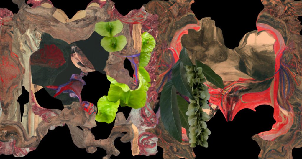 Accanto all’installazione sarà esposta un’opera fisica, Fragmenta, anch’essa realizzata per l’occasione. Si tratta di una tecnica mista di grandi dimensioni (205×205 cm), che riflette la condizione degli alberi minacciati e delle foreste che sopravvivono in aree frammentate, territori un tempo continui oggi ridotti ad aree isolate. L’artista è intervenuta sulle immagini generate dall’algoritmo, lacerandole fisicamente e ricomponendole a mano, dando origine a una superficie segnata da tagli, lacune, sovrapposizioni e collisioni.